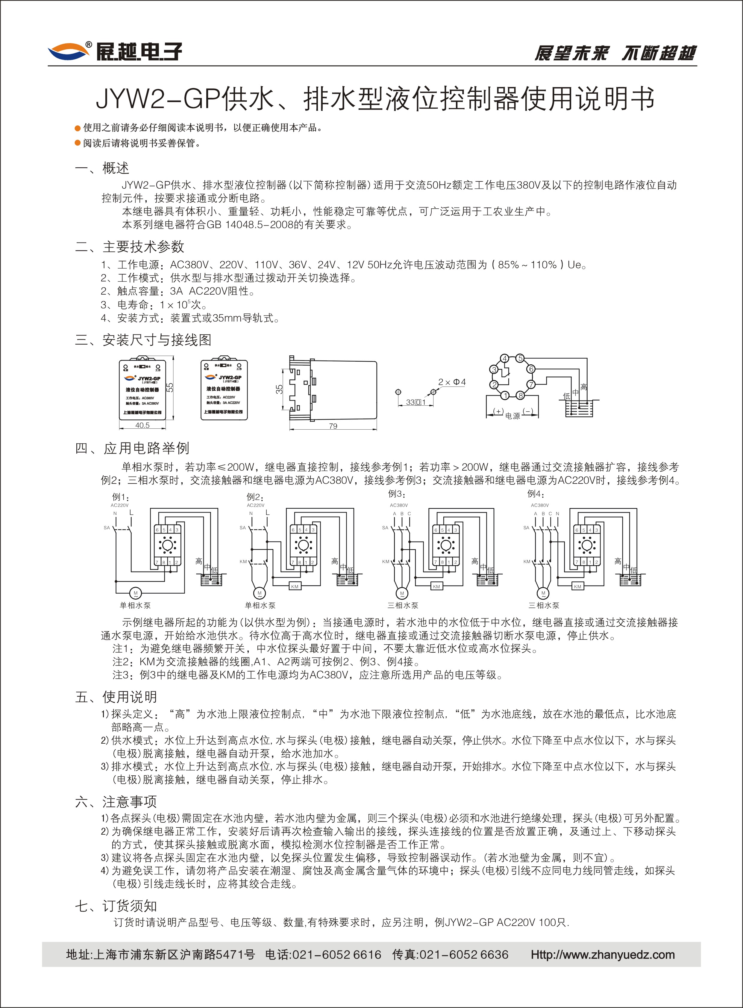 JYW2-GP液位自动控制器使用说明书