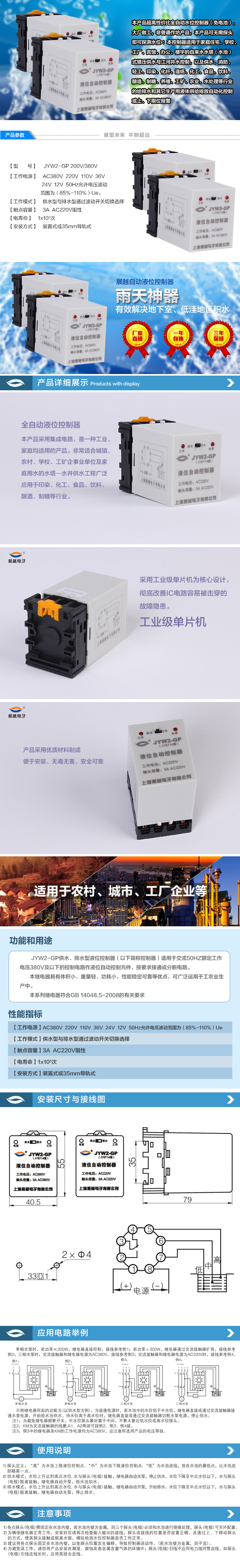 产品名称:JYW2-GP/AC220V液位自动控制器