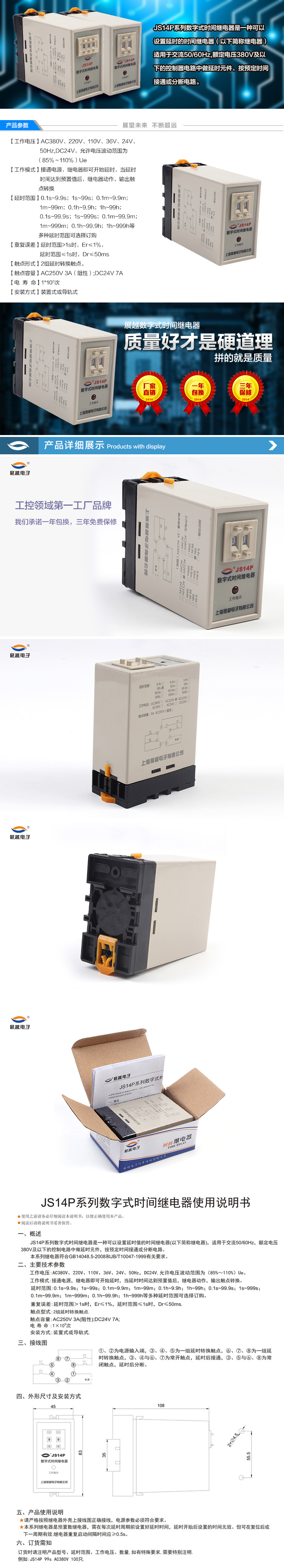 产品名称:数字式时间继电器JS14P 1~99S